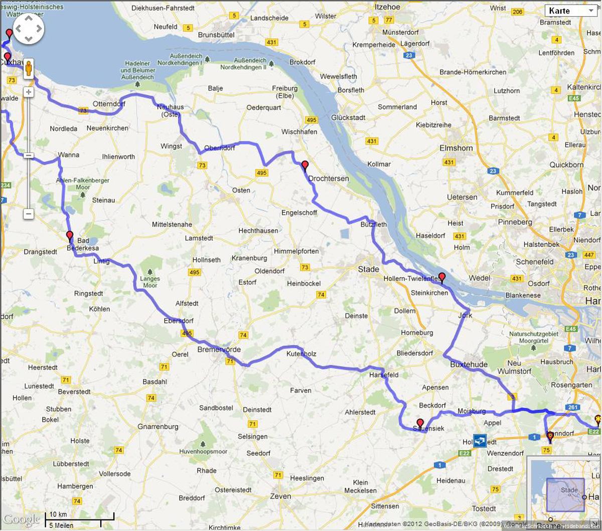 Diese Tour bin ich am letzten Samstag gefahren, allerdings mit übernachten im Schlafsack und Lagerfeuer am Elbstrand von Krautsand.
